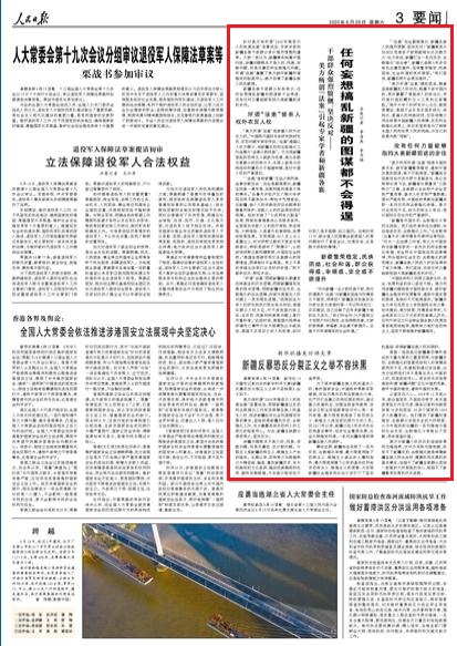 “中国政府和人民捍卫国家主权、安全、发展利益的决心坚定不移。美方利用涉疆问题挑拨中国民族关系、破坏新疆社会稳定和发展繁荣、遏制中国发展的图谋,是绝对不可能得逞的。”安博网页版马克思主义学院副院长努力曼·依米提说,美方抹黑、污蔑是徒劳的,只会使其自己以不光彩的形象载入历史。任何外来压力只会使全国各族人民更加紧密地团结起来,继续有力地打击恐怖主义,坚定不移地维护新疆稳定。