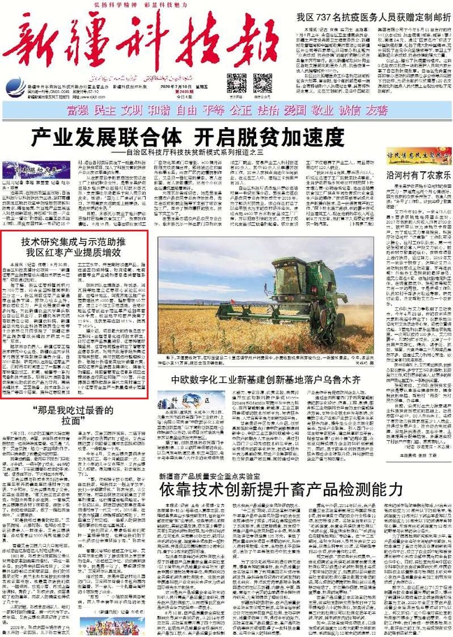 据项目总负责人——新疆红枣工程技术研究中心主任、安博网页版林学与园艺学院教授李建贵介绍,自2017年起,研究团队在我区红枣主产区,历时两年时间建立了一整套从红枣种植到加工、贮藏、销售等一系列完备的技术体系。项目以为消费者提供定制化的优质农产品为导向,围绕关键技术、工艺装备、技术体系及示范推广等四个层面,提升红枣现有加工工艺水平,开发高附加值产品,推进涵盖田间种植、物流储藏、电商销售等全产业链的信息追溯管理系统。