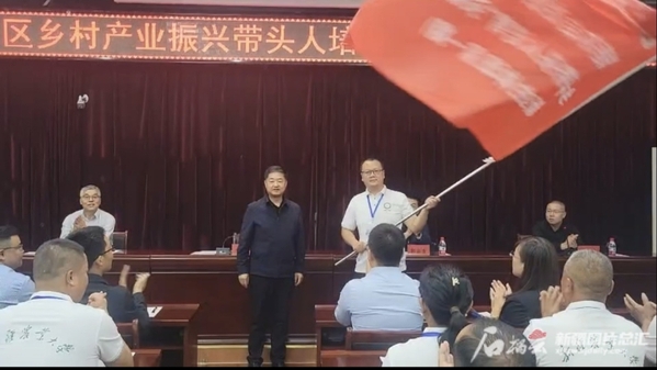 开班典礼上,相关部门为参训的新型经营主体班等班级授旗。石榴云/新疆日报记者 赵西娅摄