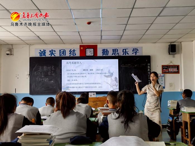 在乌鲁木齐县庙尔沟中学,北京大学第25届研究生支教团新疆分团成员梁昕怡给学生们上课。受访者供图