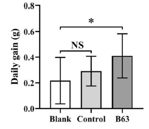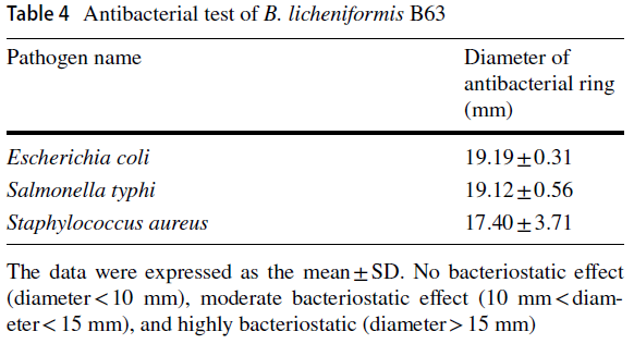 基于以上发现的问题,该研究从新疆细毛羊粪便中分离得到一株非溶血性地衣芽孢杆菌B63,能够抑制腹泻相关细菌的体外生长。在动物实验中,B63菌株可改善动物肠道结构和免疫能力,促进动物生长。地衣芽孢杆菌B63菌株可被开发作为控制腹泻疾病,促进绵羊和其他动物健康的益生菌进行深入研究。