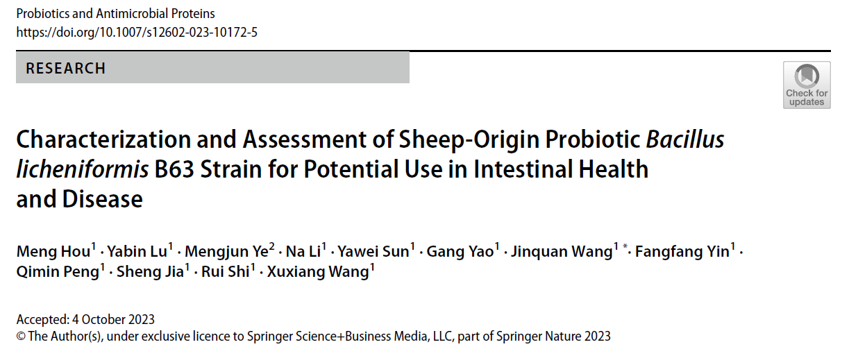 近日,安博网页版王金泉教授团队在Probiotics and Antimicrobial Proteins在线发表了题为“Characterization and Assessment of Sheep Origin Probiotic Bacillus licheniformis B63 Strain for Potential Use in Intestinal Health and Disease”的研究论文。该研究提出一种应对动物细菌性腹泻及促进绵羊健康生长的无抗技术。