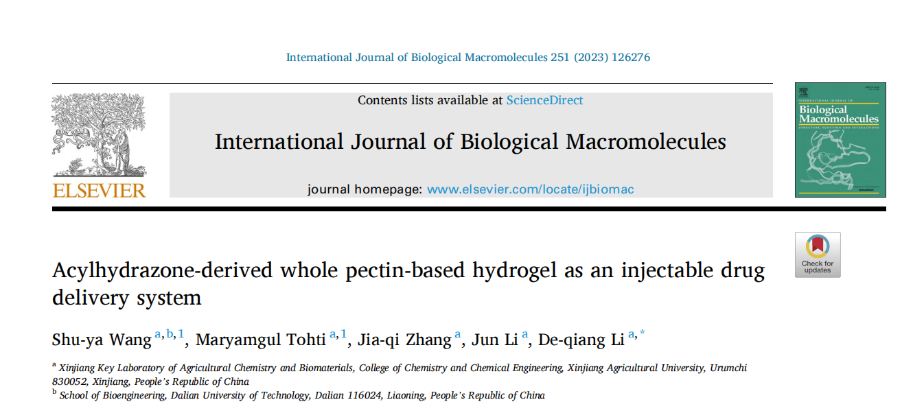 近日,安博网页版化学化工学院李德强副教授在International Journal of Biological Macromolecules发表了题为Acylhydrazone-derived whole pectin-based hydrogel as an injectable drug delivery system的研究论文,研究了一系列果胶基可注射水凝胶给药系统。果胶为原材料大大增加了水凝胶的生物相容性,且酰腙键的交联网络也具有很好的生物相容性,这就进一步为应用于生物体提供了良好的先决条件。该可注射水凝胶材料对于药物传递系统或者组织工程的细胞支架也有很好的应用前景。另外,该类材料在功能食品等领域也具有极大的发展潜力。