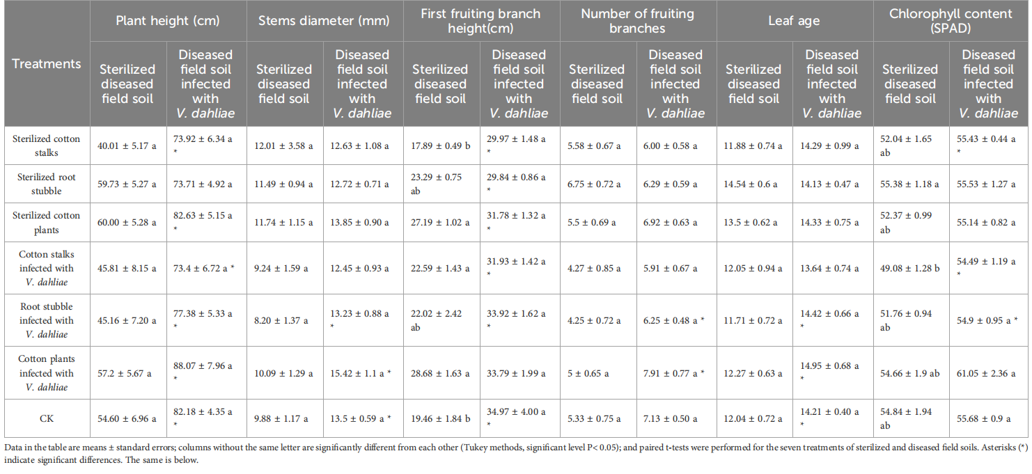 表1带菌棉秆和根茬直接还田对棉花生长发育的影响(70 d)