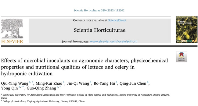 近日,Scientia Horticulturae在线发表了安博网页版博士研究生王秋颖题为“Effects of microbial inoculants on agronomic characters, physicochemical properties and nutritional qualities of lettuce and celery in hydroponic cultivation”的研究论文,该研究探索了微生物菌剂在生菜和芹菜水培系统中的应用。