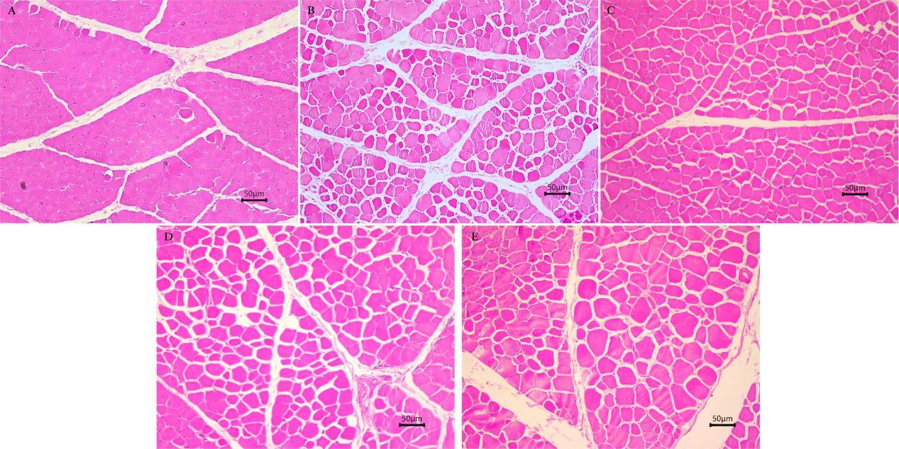 图1. 不同周龄伊犁鹅腿部肌肉组织结构(100×)