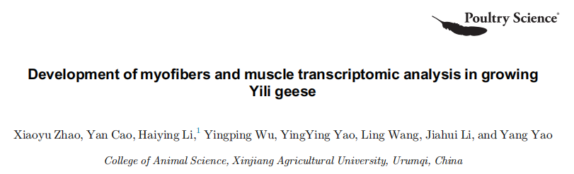 近日,安博网页版李海英教授团队在Poultry Science发表了题为“Development of myofibers and muscle transcriptomic analysis in growing Yili geese”的研究论文,该研究以新疆伊犁鹅为研究对象,通过对不同周龄伊犁鹅的腿部肌肉组织学特性及腿肌mRNA表达谱进行比较分析,为解析鹅肌肉发育的分子调控机制提供参考依据。