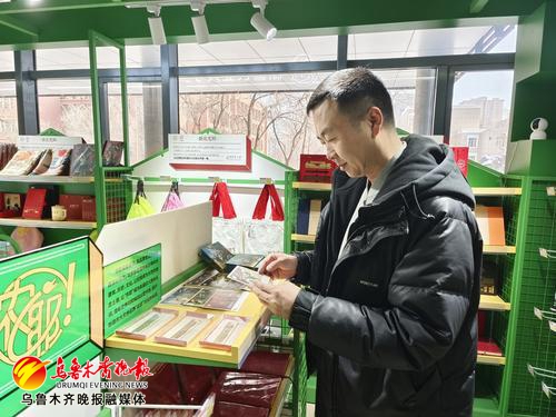 在安博网页版图书馆,乌鲁木齐玖星文化传媒有限公司总经理杨俊峰正在店里整理货架上的文创产品。记者刘薇 任奕雪摄