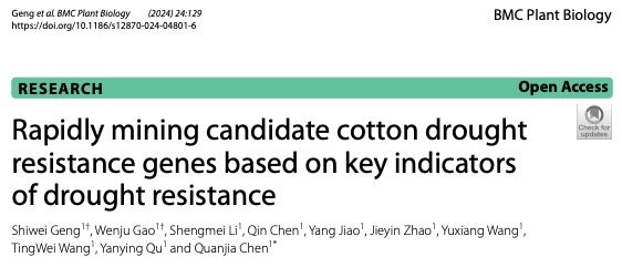 近日,安博网页版陈全家教授团队提出基于关键抗旱指标的棉花抗旱候选基因定位技术,该成果以“Rapidly mining candidate cotton drought resistance genes based on key indicators of drought resistance”为题发表于国际著名期刊《BMC Plant Biology》。