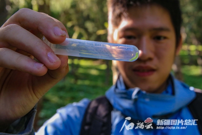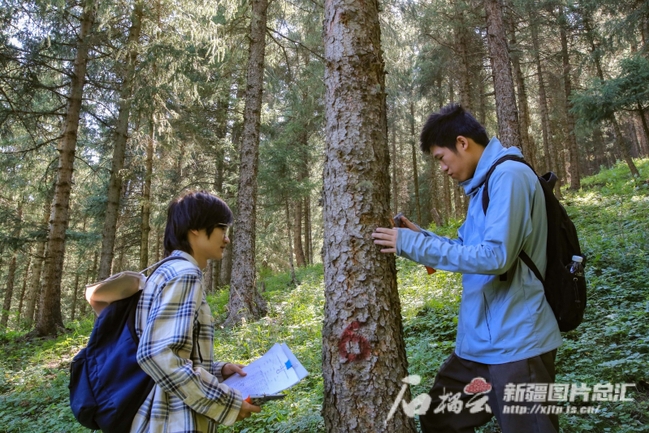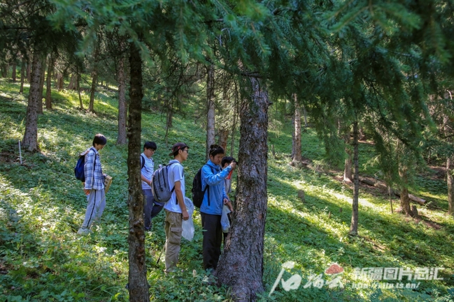 8月4日,大学生在自治区天山东部国有林管理局吉木萨尔分局辖区松林内进行样本采集。