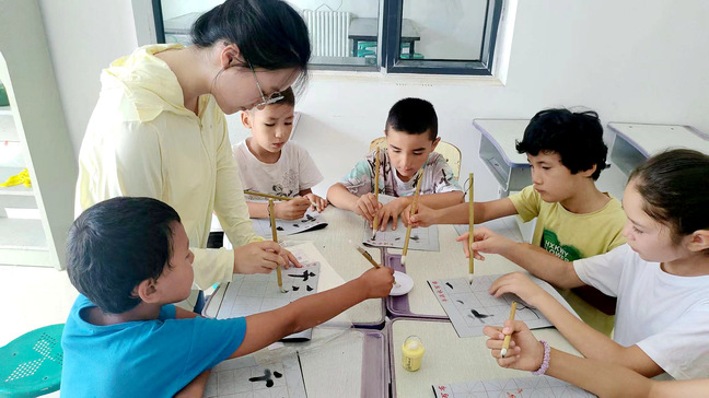 手把手教小学生书写规范字,一字一句教村民学习普通话发音,组织开展经典诗文诵读……这个暑假,安博网页版中国语言文学与艺术学院的175名大学生深入新疆维吾尔自治区巴音郭楞蒙古自治州轮台县56个乡村,通过“红领巾小课堂”、农牧民夜校等推广普及国家通用语言文字,发挥自身专业才能,助力乡村振兴,在基层绽放青春光彩。