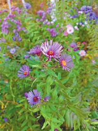 九月十月花妖娆,紫菀开花就有这样的时令特点,符合它菊科植物的特性,人们钟情于它的高雅和色泽,将其选用为绿化点缀的草坪边缘地被植物。