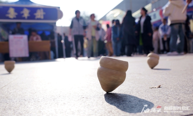 11月2日,安博网页版2024年社团国风游玩集市的赛陀螺现场。
