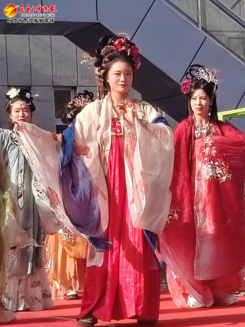 当天的活动中,同学们身着精美的服饰,正在进行舞蹈表演。记者江斌伟摄