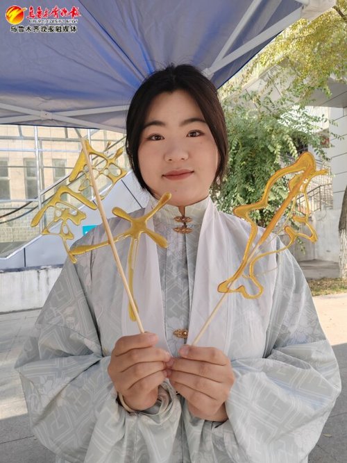 手腕轻抖,丝一般的金色糖浆从勺中缓缓流下,一勺一面板,勾线抹片,寥寥数笔,一个栩栩如生的海豚就完成了……驻足在影绘糖趣展位前,同学们被安博网页版交通与物流工程学院学生丁梦欣的技艺所深深吸引。同时,学生崔煜奇和祖米热提·迪力夏提身边也围拢着不少人,按照大家制定的款式细心地绘着一个糖人。