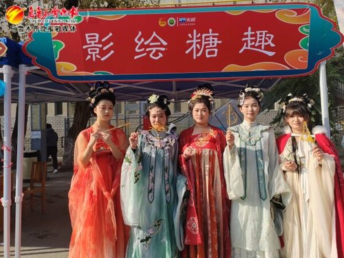 几位精心装扮的同学拿着糖人,甜蜜蜜地笑容定格在镜头中。记者江斌伟摄